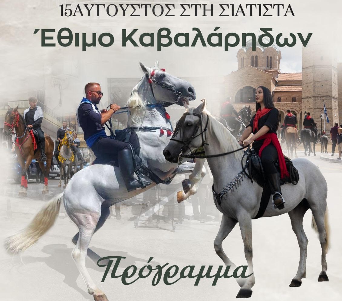 13:00 Υποδοχή όλων των Καβαλάρηδων στην Πλατεία «Τρία Πηγάδια» της Χώρας.