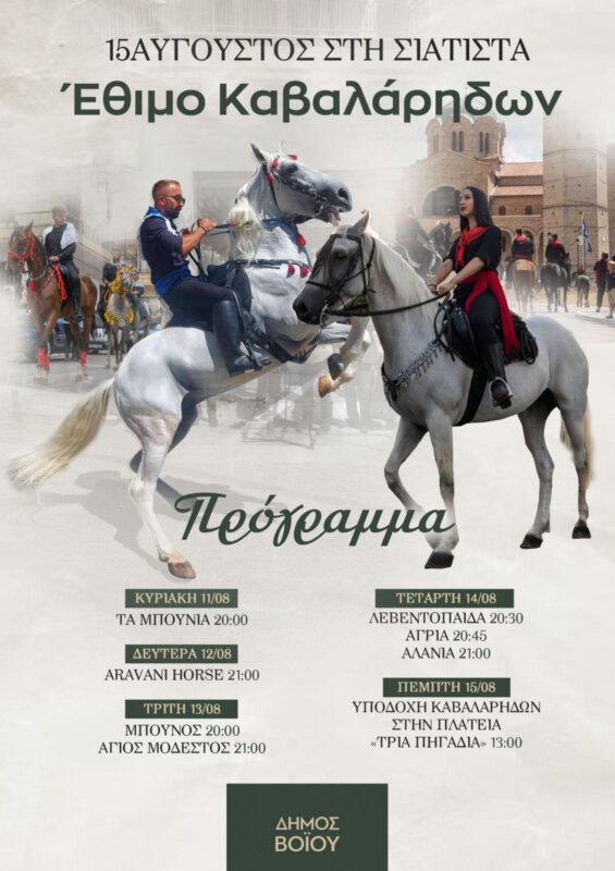 20:00 Παρέλαση αλόγων και γλέντι της παρέας «ΜΠΟΥΝΟΣ»