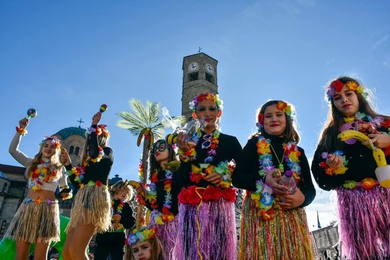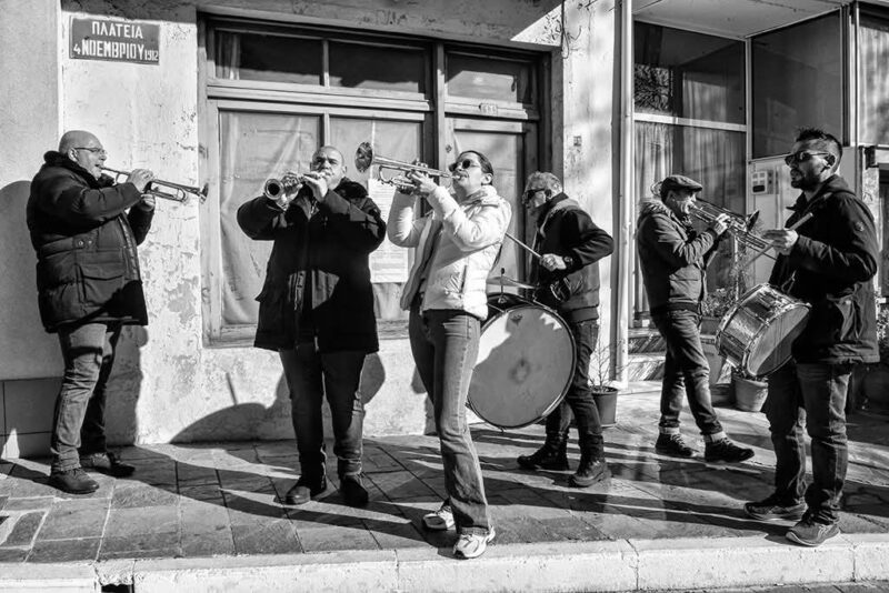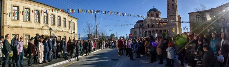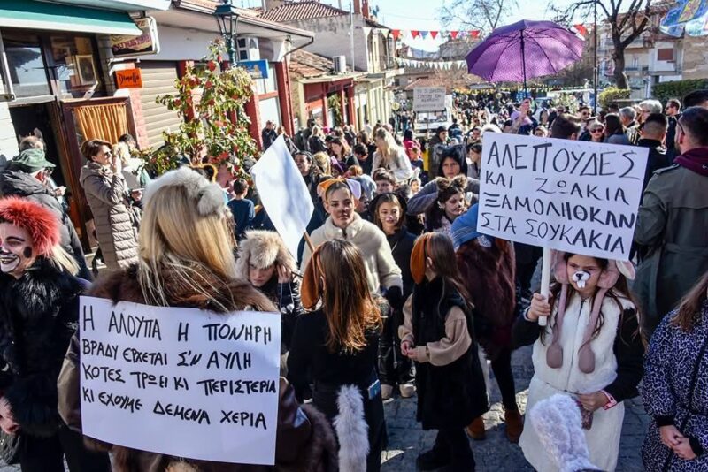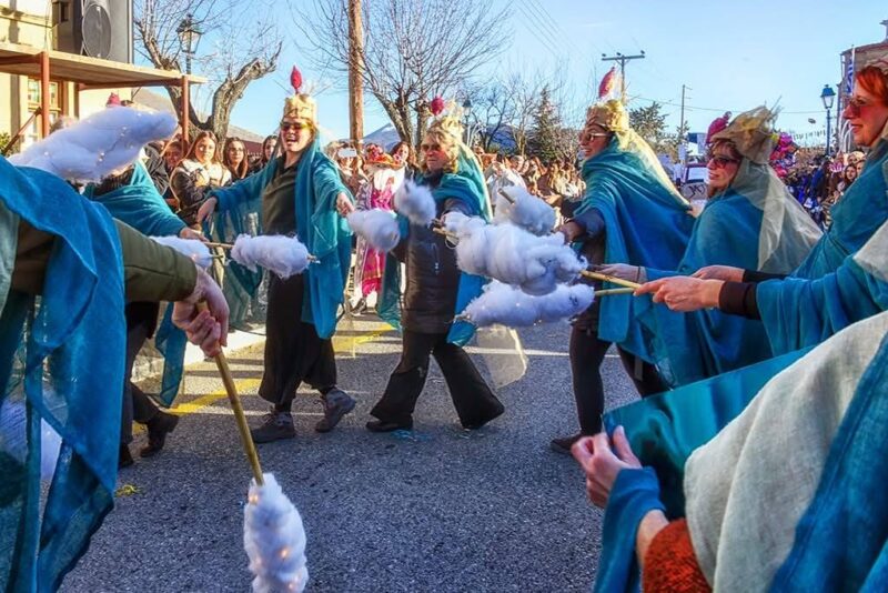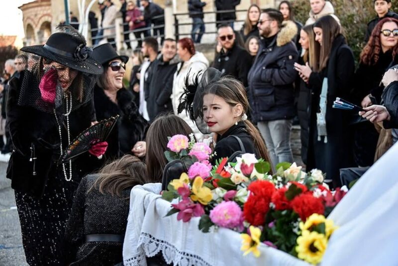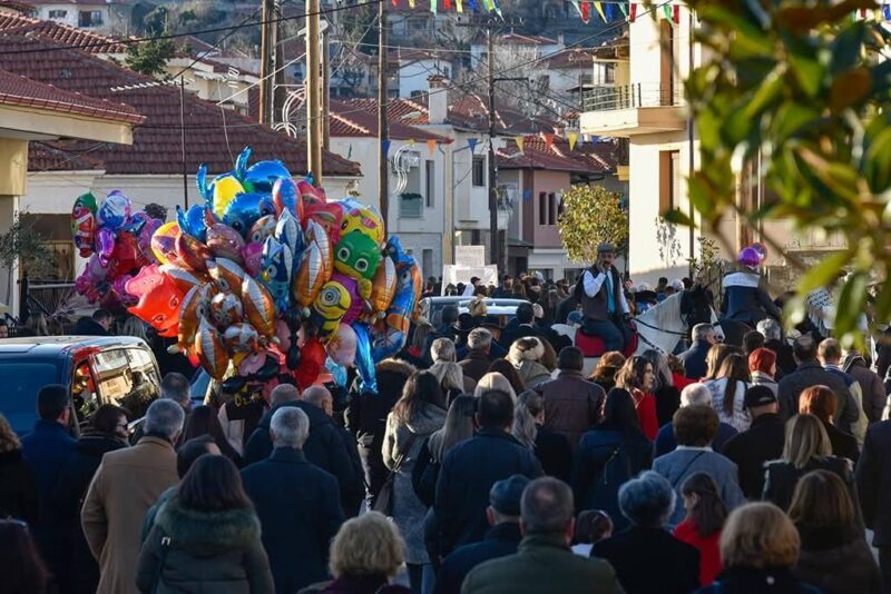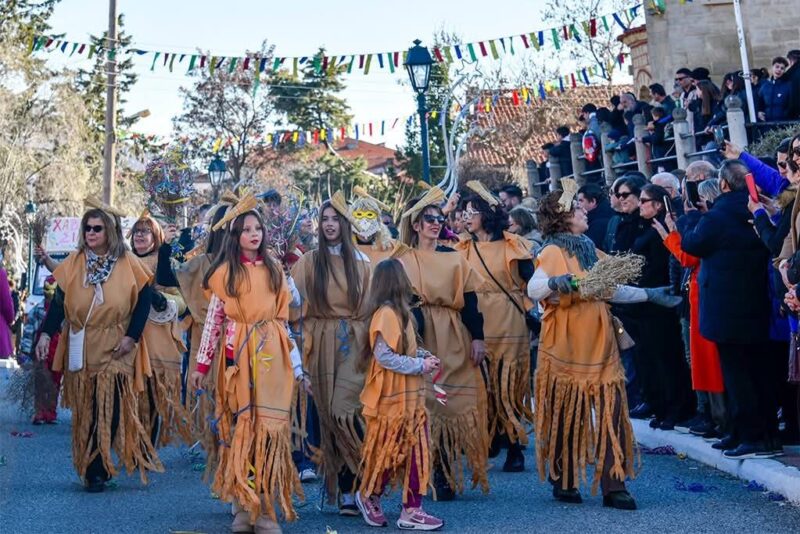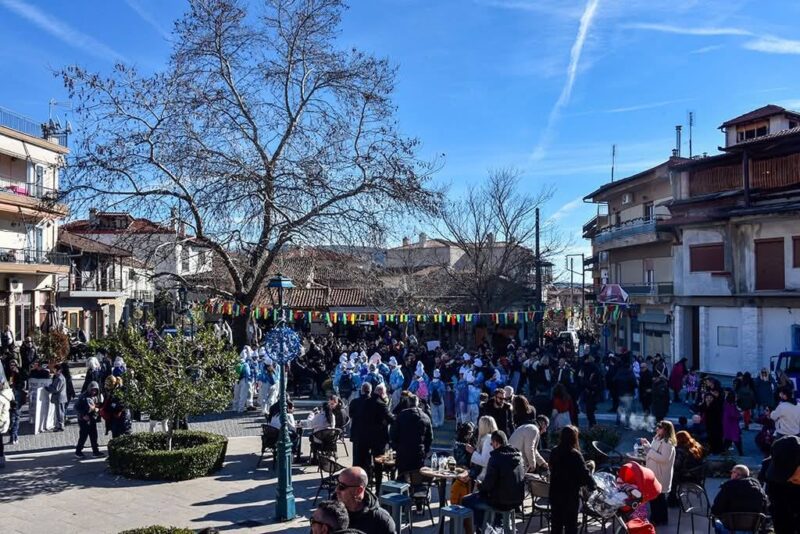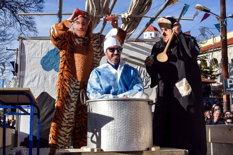 Το γλέντι είχε ξεκινήσει από την παραμονή στην πλατεία Γεράνειας, ενώ η τοπική κοινότητα προσέφερε δωρεάν κρασί, εδέσματα και τραχανά.