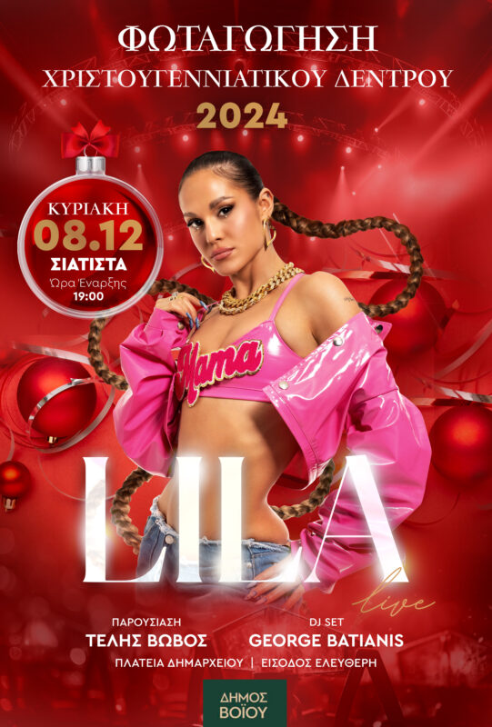 Φέτος γιορτάζουμε μαζί με την ποπ τραγουδίστρια Lila, σε ένα μοναδικό μουσικό ταξίδι, την Κυριακή 8 Δεκεμβρίου στις 19:00, στην πλατεία Δημαρχείου.