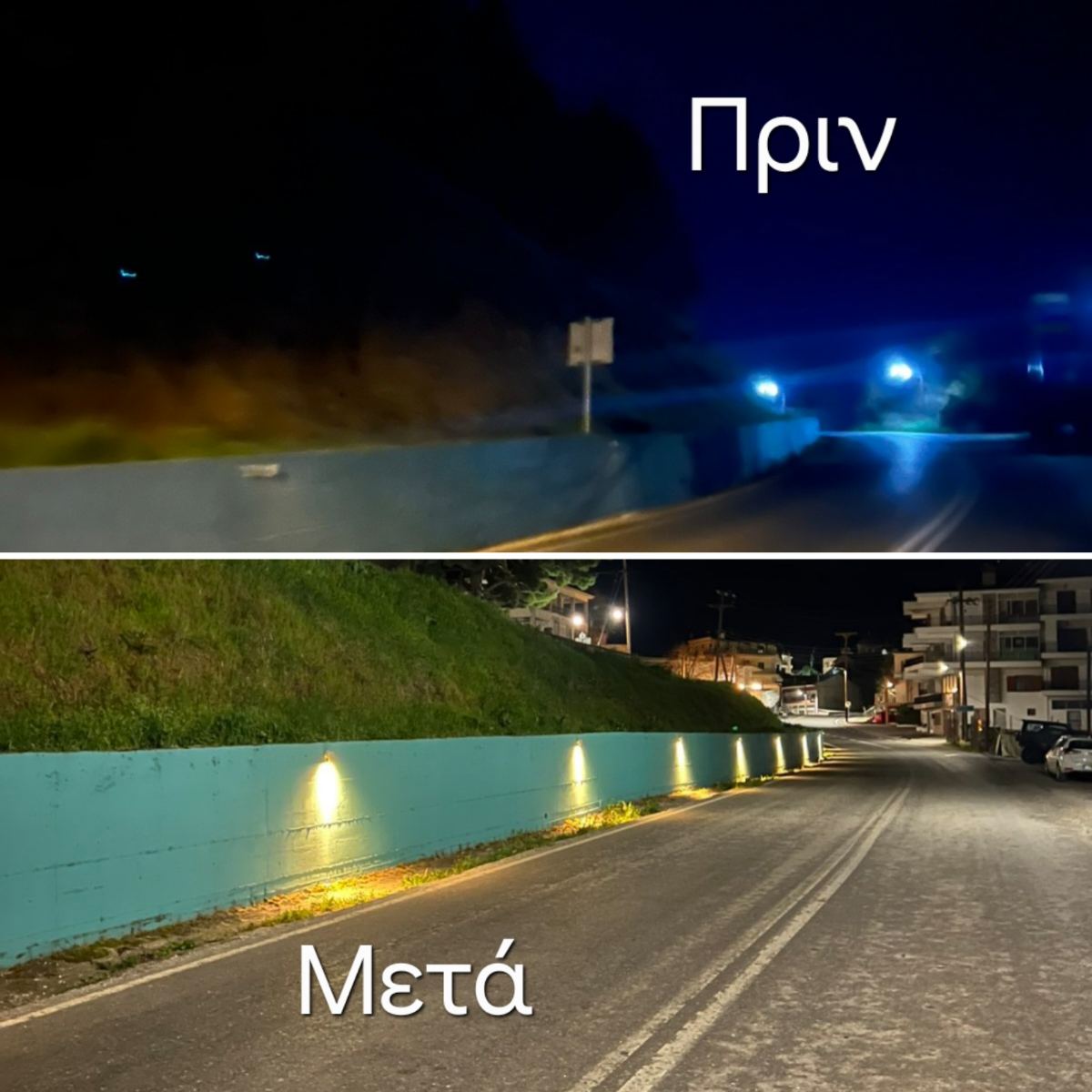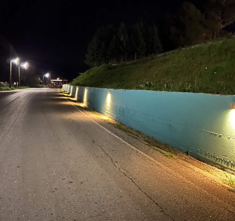 Συγκεκριμένα πραγματοποιήθηκαν έργα καλλωπισμού και τοποθέτησης φωτιστικών στο τοιχίο που περιβάλλει το Δημοτικό κατάστημα, το οποίο είχε ήδη χρωματιστεί.