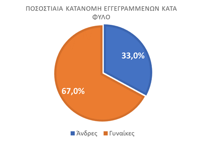 - Οι άνδρες ανέρχονται σε 285.532 άτομα (ποσοστό 33,0%) και οι γυναίκες ανέρχονται σε 580.917 άτομα (ποσοστό 67,0%).