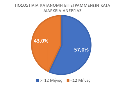 ΔΙΑΓΡΑΜΜΑ 1: ΣΥΝΟΛΟ ΕΓΓΕΓΡΑΜΜΕΝΩΝ ΚΑΤΑ ΦΥΛΟ ΚΑΙ ΔΙΑΡΚΕΙΑ ΑΝΕΡΓΙΑΣ