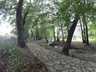 Έπειτα και αφού κινηθεί για 300 μέτρα περίπου σε κατηφορική άσφαλτο, θα στρίψει αριστερά και θα μπει σε ένα πλακόστρωτο μονοπάτι, το οποίο βρίσκεται στη θέση «Βρύση Γιαννούκα». Πρόκειται για ένα πανέμορφο μονοπάτι, που κινείται μέσα σε ένα πλατανόδασος ιδιαίτερου φυσικού κάλλους, δίπλα από έναν από τους παραποτάμους του Αλιάκμονα (Χάνδακας) τον οποίο και διασχίζει αρκετές φορές.