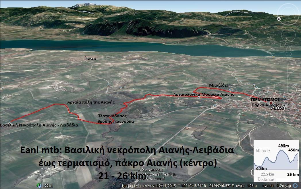 Ανάλυση διαδρομής: Από τοποθεσία «Βασιλική Νεκρόπολη Αιανής – θέση Λειβάδια» (21ο χλμ/26) έως τερματισμό «Πάρκο – κέντρο Αιανής» (26ο χλμ/26)