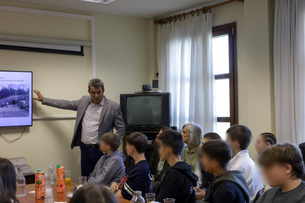 Σαράντα μαθητές και μαθήτριες της Γ’ τάξης του 4ου Γυμνασίου Καστοριάς, μαζί με τους εκπαιδευτικούς τους, υποδέχτηκε την Τρίτη 20 Μαΐου 2025 στην Περιφερειακή Ενότητα Καστοριάς ο Αντιπεριφερειάρχης Καστοριάς, Δημήτρης Σαββόπουλος, στο πλαίσιο του μαθήματος Κοινωνικής και Πολιτικής Αγωγής.