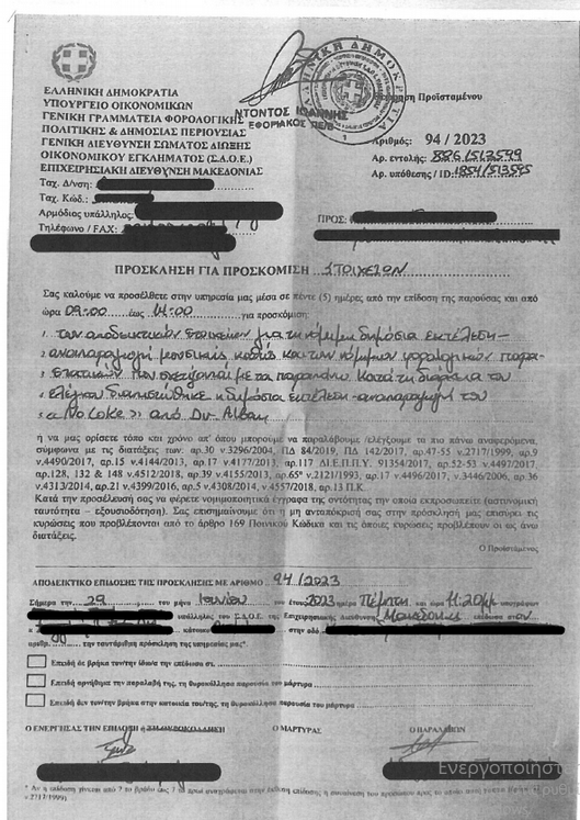 Πράγματι η ως άνω πράξη του ελεγκτικού φορέα ΣΔΟΕ μας εξέπληξε και τέθηκαν ερωτήματα για το εάν ο ως άνω φορέας νομιμοποιείται.