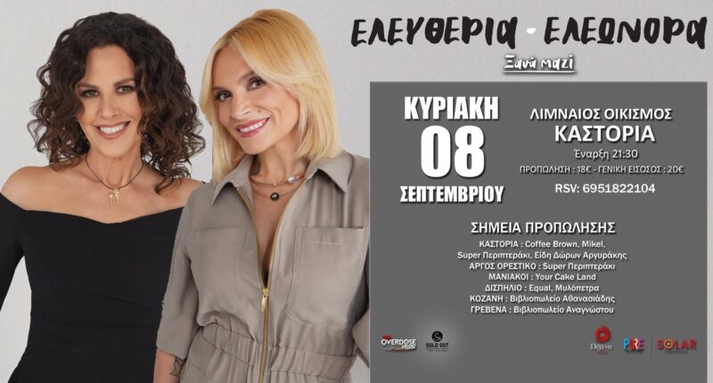 Ελευθερία Αρβανιτάκη – Ελεονώρα Ζουγανέλη στο Δισπηλιό Καστοριάς! Ξεκίνησε η φυσική προπώληση!