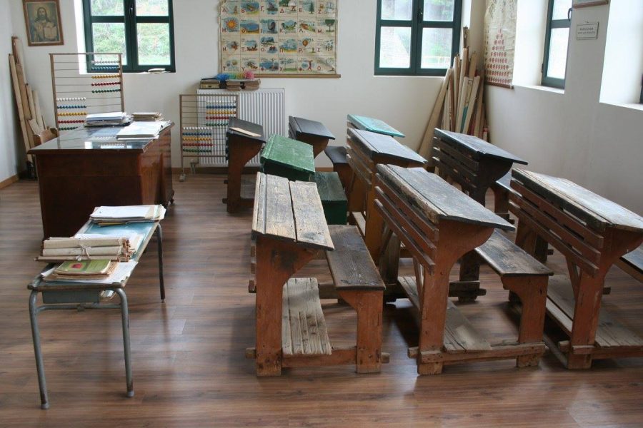 Στην πρώτη αίθουσα γίνεται μια αναπαράσταση της παλιάς σχολικής τάξης, με αντικείμενα όπως: ξύλινα θρανία, παλιά τετράδια, μαθητικές τσάντες, εκπαιδευτικές πλακέτες, ποδιές, χάρτες, όργανα φυσικής, σχολικά βιβλία, αριθμητήρια, βιβλιοθήκες, έντυπα και έγγραφα καθώς και αντικείμενα που χρησιμοποιούνταν στα Μαθητικά Συσσίτια των σχολείων.
