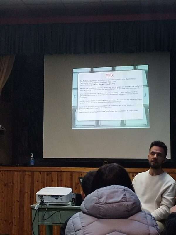 Ο κ. Φωτόπουλος ενημέρωσε αναλυτικά, με απλό και κατανοητό τρόπο τους μαθητές μας επάνω σε θέματα διαδικτυακού εκφοβισμού , σεξουαλικής κακοποίησης αλλά και για θέματα ασφαλούς πλοήγησης στο διαδίκτυο. Τέλος μας παρουσιάσε τρόπους για το πως μπορούμε με ασφάλεια και σιγουριά να κάνουμε το διαδίκτυο ένα χρήσιμο εργαλείο στα χέρια μας.