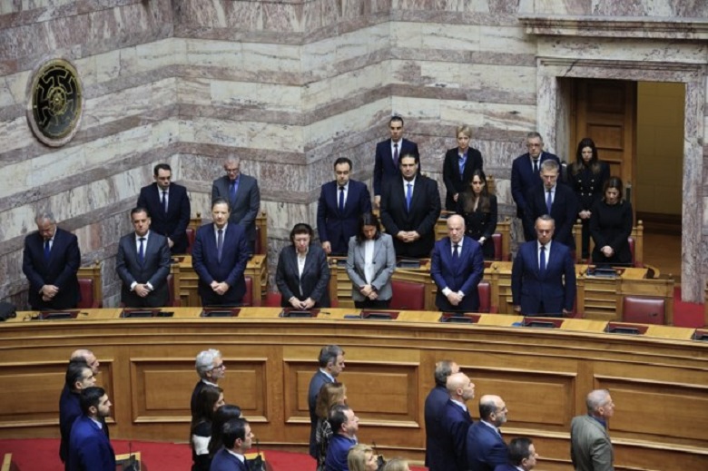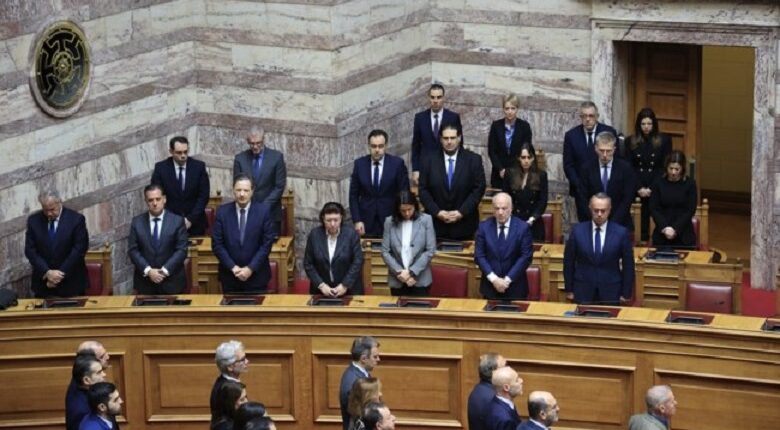 Ενός λεπτού σιγή για τα 57 θύματα των Τεμπών τηρήθηκε το πρωί στη Βουλή, παρουσία σχεδόν όλων των βουλευτών της Νέας Δημοκρατίας και των μελών της κυβέρνησης,