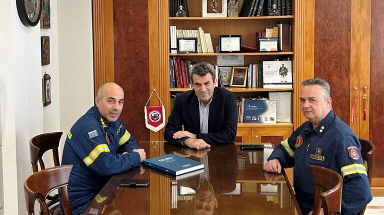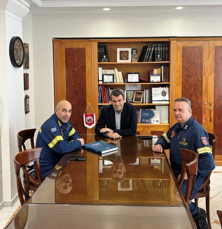 Ο κ. Σαββόπουλος συνεχάρη τον κ. Παπουτσίδη για την προαγωγή του στον βαθμό του Πύραρχου, στο πλαίσιο των πρόσφατων κρίσεων του Πυροσβεστικού Σώματος, καθώς και για την ανάληψη των νέων καθηκόντων του ως Διοικητής των Πυροσβεστικών Υπηρεσιών Νομού Καστοριάς και του ευχήθηκε καλή επιτυχία στα νέα του καθήκοντα.