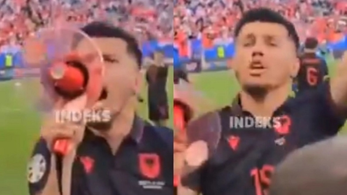 Ο Ντάκου πήρε την ντουντούκα στα χέρια του και έδωσε το σύνθημα, με τους οπαδούς της Αλβανίας να φωνάζουν στη συνέχεια «γ..ω τους Βορειομακεδόνες».