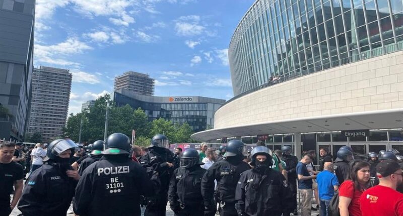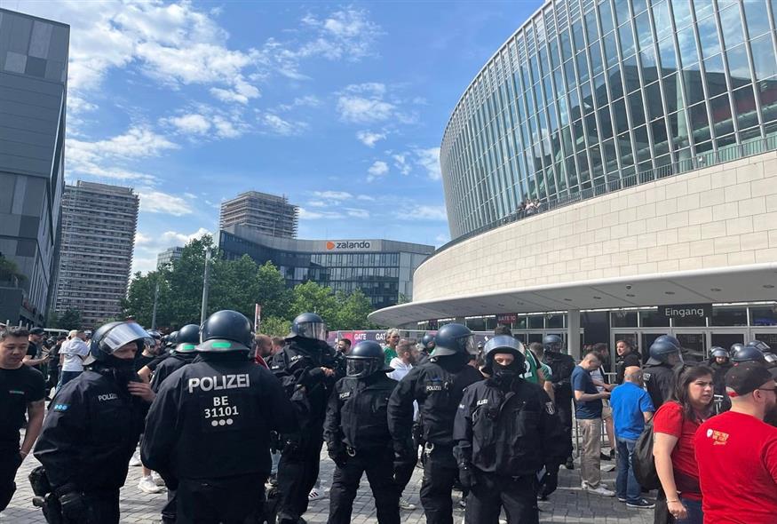 Ένταση επικράτησε πριν από λίγο έξω από την «Uber Arena», όπου θα διεξαχθούν οι αγώνες του Final 4.