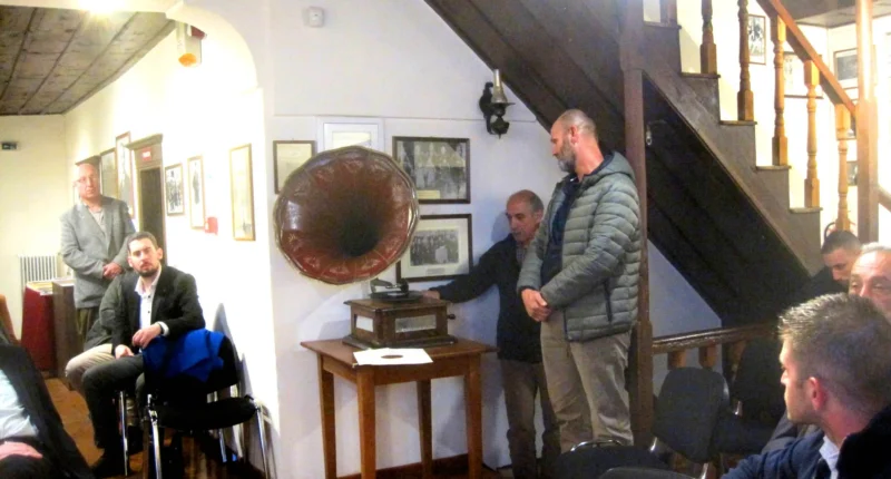 Τον ευχαριστούμε κι επειδή έγινε η αιτία η εκδήλωση να κλείσει με τον καλύτερο-διόλου αναμενόμενο-τρόπο: ο άξιος Έλληνας από την Κορυτσά Ηλίας Πιπέρης, μανιώδης συλλέκτης παλιών δίσκων μουσικής, ταξίδεψε από τη Θεσσαλονίκη, για να δωρίσει στο Μουσείο μας έναν δίσκο από τη συλλογή του, μια παλιά καταγραφή του αγαπημένου τραγουδιού του Παύλου Μελά!
