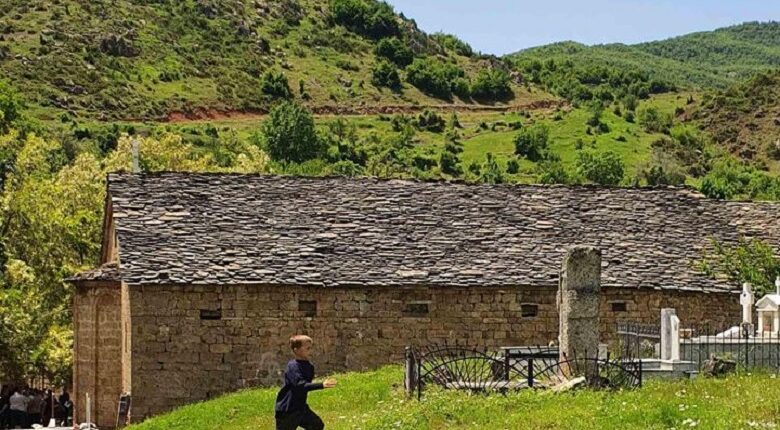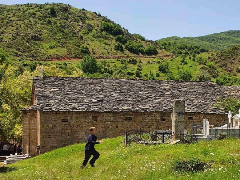 Ἕνα παιδάκι, ξεκόβοντας ἀπό τήν παρέα του, ἀρχίζει νά τρέχει γρήγορα πρός τόν βόρειο μέρος τῆς Ἐκκλησίας, ὅπου βρίσκεται τό κοιμητήριο τοῦ χωριοῦ.