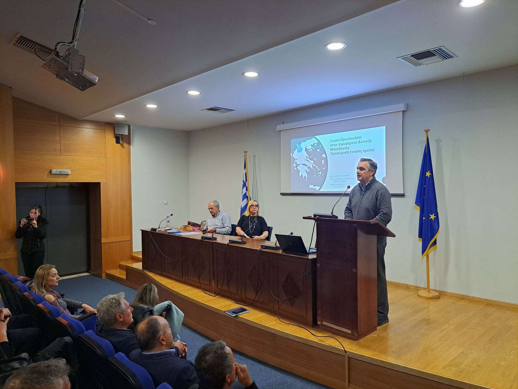 Ολοκληρώθηκε με χρήσιμα συμπεράσματα η ενημερωτική συνάντηση που διοργάνωσε η Περιφέρεια Δυτικής Μακεδονίας σε συνεργασία με το Ινστιτούτο Κτηνιατρικών Ερευνών του ΕΛΓΟ-ΔΗΜΗΤΡΑ που υλοποιεί το πρόγραμμα: «Ζωοανθρωπονόσοι στην Περιφέρεια Δυτικής Μακεδονίας. Προσέγγιση ενιαίας υγείας», την Τετάρτη 10 Μαΐου 2023, στο αμφιθέατρο Κωνσταντίνος Καραμανλής στη ΖΕΠ, παρουσία του Περιφερειάρχη Δυτικής Μακεδονίας Γιώργου Κασαπίδη.