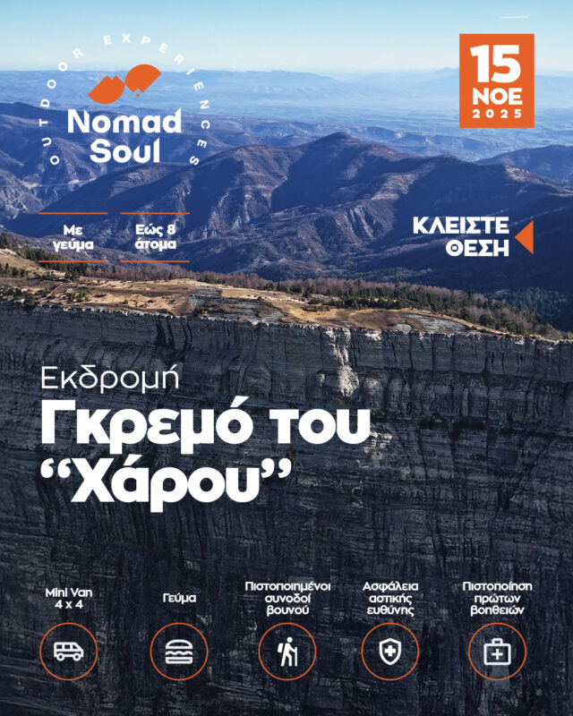 Το Σάββατο 15 Νοεμβρίου η Nomad Soul πεζοπορεί από την παλιά Κοτύλη στον Γκρεμό του “Χάρου”. Μια ημερήσια εκδρομή της Nomad Soul σε μέρη ιστορικού και φυσικού ενδιαφέροντος. Εύκολη πεζοπορική διαδρομή, κατάλληλη και για παιδιά.
