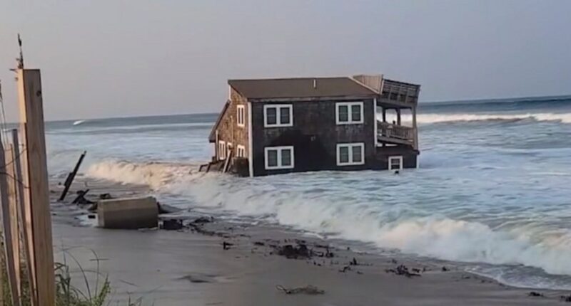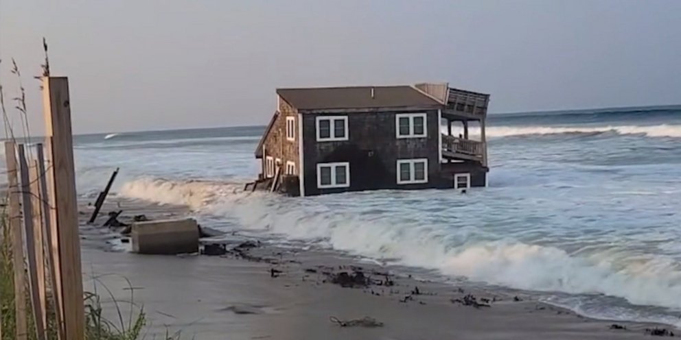 Ένα σπίτι στη Βόρεια Καρολίνα στην περιοχή Ροδάνθη κατέρρευσε στον Ατλαντικό Ωκεανό μετά από ένα τεράστιο κύμα από τον τυφώνα Ernesto.