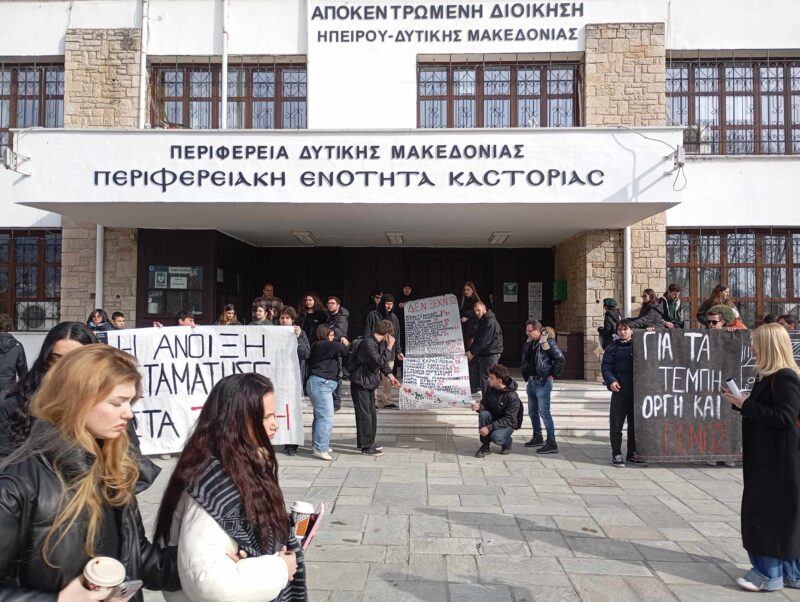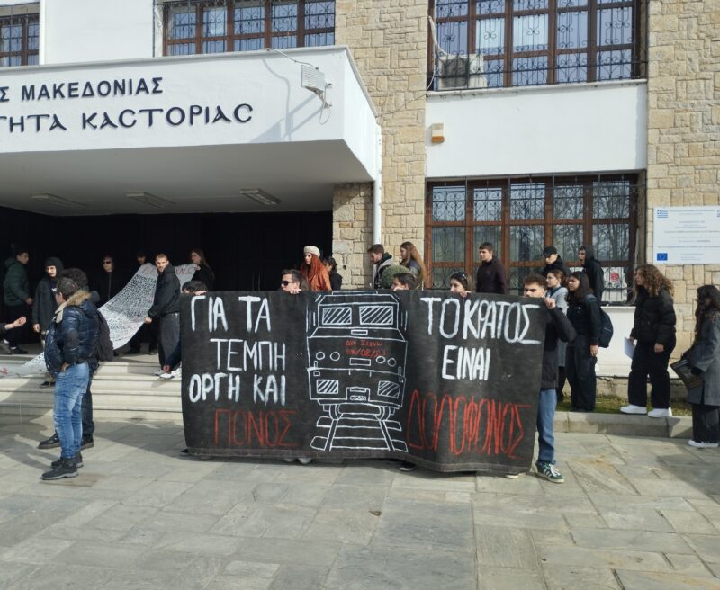 Δεν ήταν όμως μια συνηθισμένη Κυριακή, ήταν μια Κυριακή διαμαρτυρίας και θρήνου και έτσι ώφειλε να είναι αφού οι 57 των Τεμπών δεν ζουν αναμεσά μας. Οι ζωές τους τερματίστηκαν βίαια και άδικα. Γι’ αυτό και για να μην ξαναγίνει κάτι τέτοιο, για να σταματήσει η συγκάλυψη και η ατιμωρησία, για αυτές τις ψυχές, για τους ανθρώπους τους, για εμάς και τους δικούς μας ανθρώπους, η μικρή Καστοριά χθες μεγάλωσε. Σε μια πορεία που ήταν απροσδόκητα πολυπληθής, ο κόσμος της Καστοριάς έγινε ένα ακόμα κομμάτι του παζλ της πανελλήνιας -και όχι μόνο- διαμαρτυρίας. Χθες, Κυριακή 26 Ιανουαρίου 2025, ενώσαμε τις φωνές μας για τη δικαιοσύνη υποκινούμενοι/ες από το συλλογικό πένθος και τον θυμό της αδικίας. Η οργή ξεχείλισε στους δρόμους της πόλης περνώντας από τα σημεία εξουσίας, το δημαρχείο και την νομαρχία.