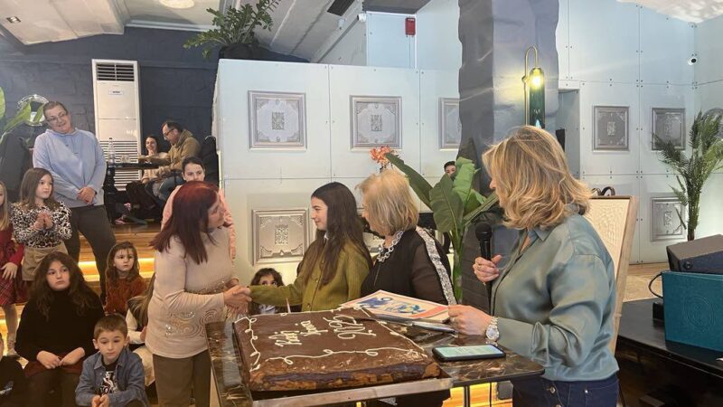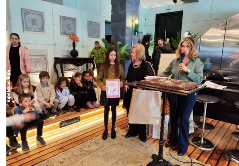 & η κα Αλίκη Καλτσαριδου έδωσαν στα δύο παιδιά σε μια τιμητική διάκριση από ένα συμβολικό δώρο!