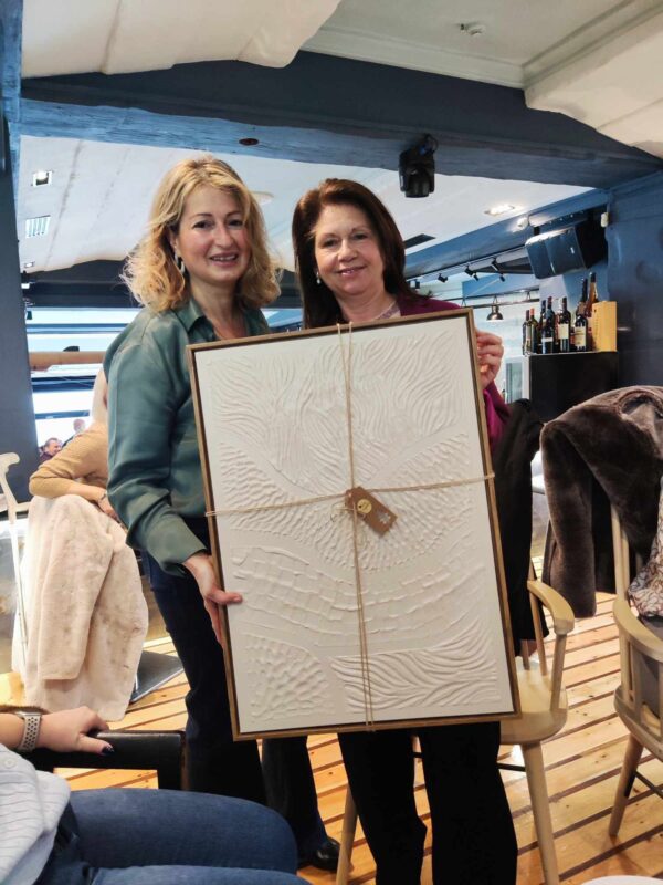 Έναν πίνακα με μεικτή τεχνική για τα τμήματα ζωγραφικής ενηλίκων και μελών του συλλόγου ,το οποίο μετά από κλήρωση κέρδισε η κα Άννα Ζαρμπο!