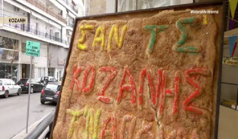 Στην Κοζάνη, ο αρτοποιός Δημήτρης Λαβαντσιώτης, έψησε μία λαγάνα που ζυγίζει τριάντα κιλά.