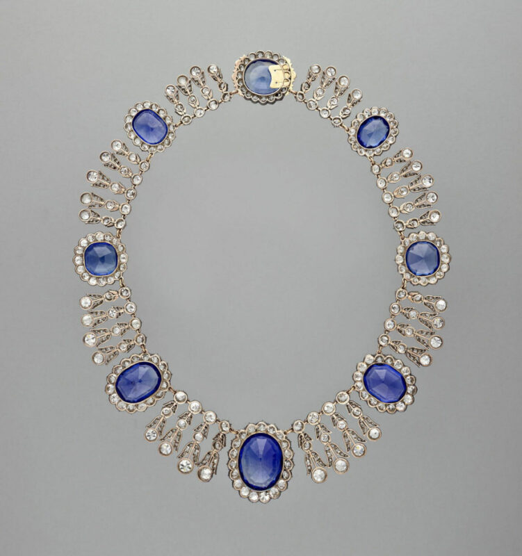 ● Το κολιέ από το σετ με ζαφείρια της βασίλισσας Μαρίας Αμαλίας και της βασίλισσας Ορτάνς