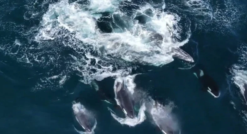Δύο γκρίζες φάλαινες βρέθηκαν πρόσφατα σε μια οδυνηρή μάχη στα ανοικτά των ακτών της Καλιφόρνια, καθώς αναγκάστηκαν να αποκρούσουν μια άγρια επίθεση από ένα κοπάδι τριάντα φαλαινών – δολοφόνων. Το φρικιαστικό γεγονός διήρκεσε για εξαντλητικές πέντε ώρες προτού οι γκρίζες φάλαινες καταφέρουν τελικά να ξεφύγουν.