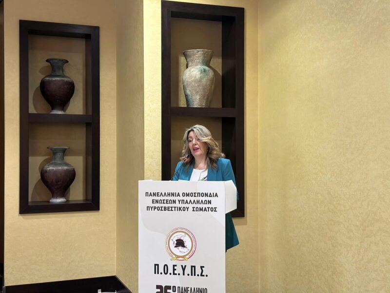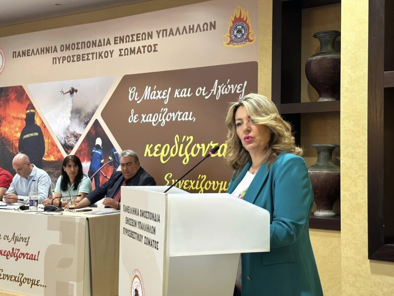 Η Βουλευτής Καστοριάς Μαρία Αντωνίου παρέστη στο 26ο Τακτικό Πανελλαδικό Συνέδριο της Πανελλήνιας Ομοσπονδίας Ενώσεων Υπαλλήλων Πυροσβεστικού Σώματος, με θέμα «Οι Μάχες και οι Αγώνες δεν χαρίζονται, κερδίζονται! Συνεχίζουμε….», που διεξάγεται από τις 4 έως τις 6 Ιουνίου στην Καστοριά και απηύθυνε χαιρετισμό ως εκπρόσωπος του Πρωθυπουργού Κυριάκου Μητσοτάκη, παρουσία της Υφυπουργού Μετανάστευσης και Ασύλου Σοφίας Βούλτεψη.