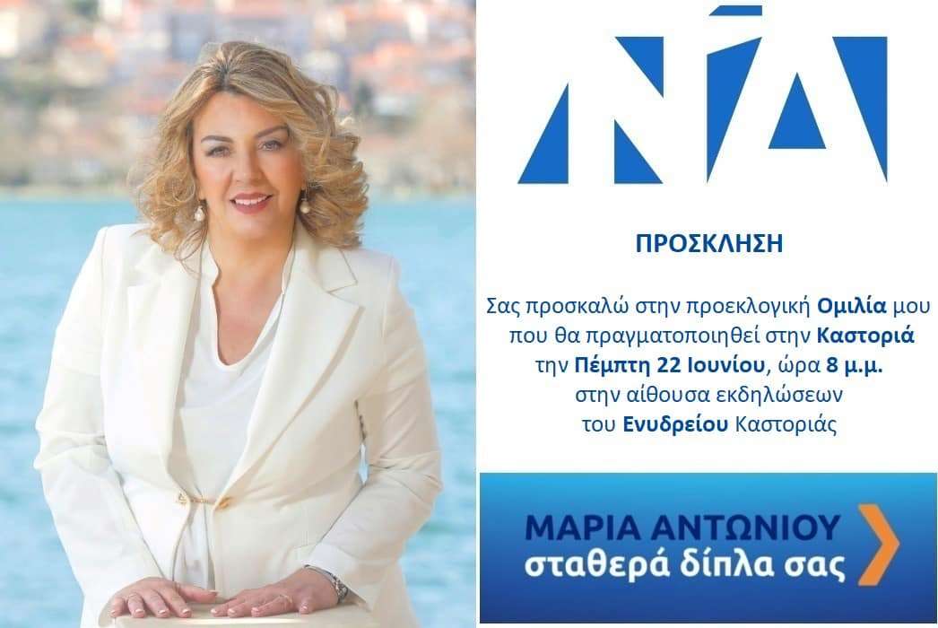 Σας προσκαλώ στην τελευταία προεκλογική μου ομιλία, την Πέμπτη 22 Ιουνίου 2023 και ώρα 20:00, στην αίθουσα εκδηλώσεων του Ενυδρείου Καστοριάς.