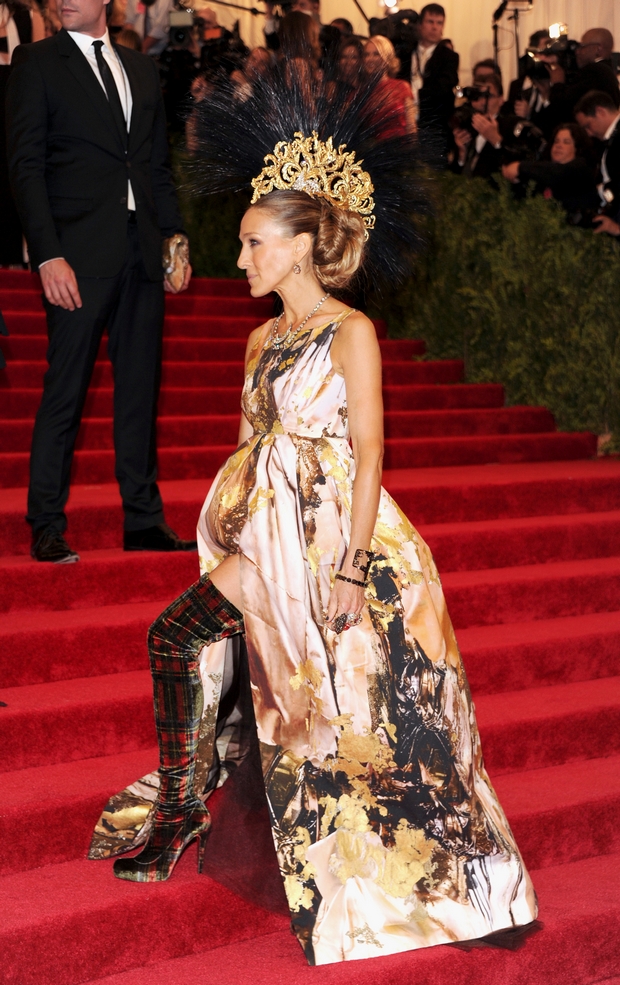 Με συνοδό τον αγαπημένο της φίλο και σχεδιαστή μόδας, Αlexander McQueen και με matching ταρτάν η ηθοποιός εντυπωσίασε. Η Sarah Jessica Parker υποστήριξε άψογα το φόρεμα που της σχεδίασε ο Βρετανός σχεδιαστής. Κομμένο και ραμμένο στο στιλ της.