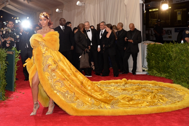 Τα λόγια είναι περιττά στην περίπτωση της Rihanna. Η καλλιτέχνιδα ανέβασε τον πήχη όσο καμία άλλη, μετά απ’ αυτή την εμβληματική εμφάνιση. Mε αυτό το κίτρινο Guo Pei φόρεμα, η Rihanna «κέρδισε» το Met Gala, ενώ έβαλε την σχεδιάστρια στον «χάρτη».