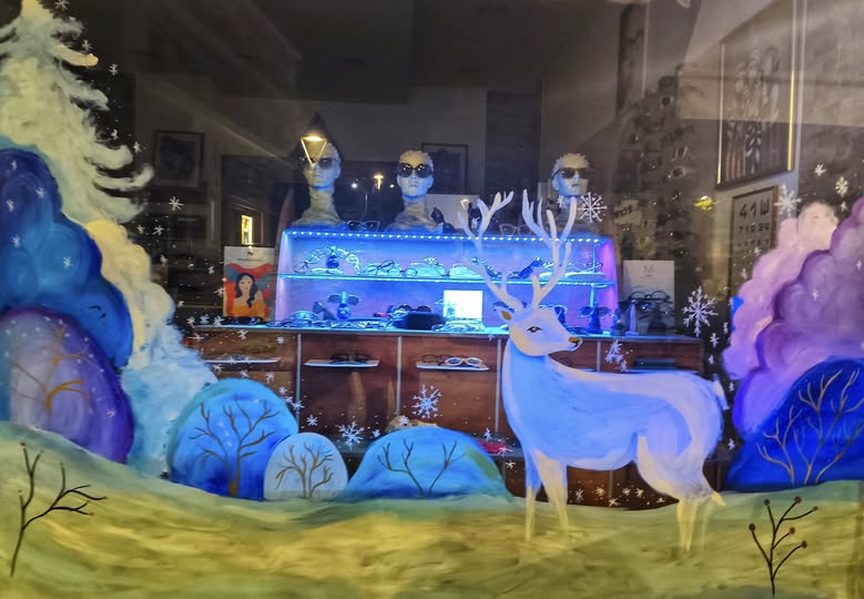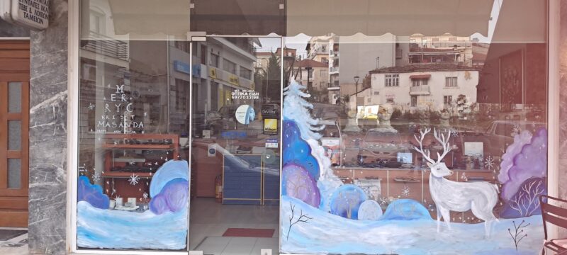 Η εικόνα πραγματικά μαγεύει τους περαστικούς! Μία υπέροχη Χριστουγεννιάτικη ζωγραφιά κοσμεί τη βιτρίνα της επιχείρησης Michael Type με οπτικά είδη στο Άργος Ορεστικό