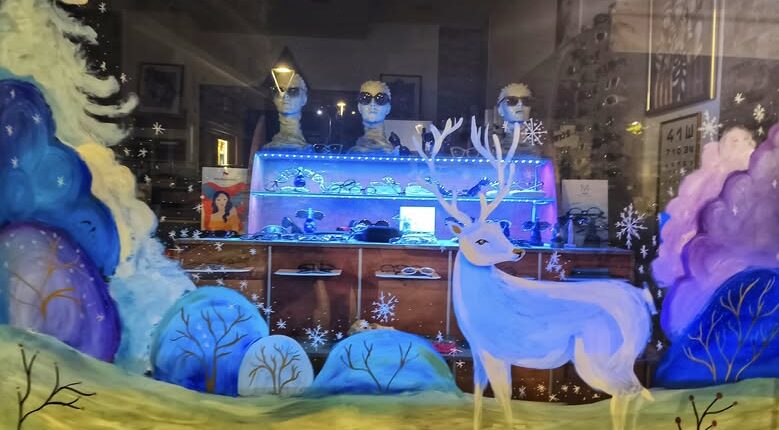 Η εικόνα πραγματικά μαγεύει τους περαστικούς! Μία υπέροχη Χριστουγεννιάτικη ζωγραφιά κοσμεί τη βιτρίνα της επιχείρησης Michael Type με οπτικά είδη στο Άργος Ορεστικό