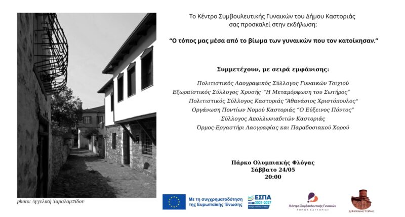 Το Κέντρο Συμβουλευτικής Γυναικών του Δήμου Καστοριάς, στο πλαίσιο των δράσεων ενημέρωσης και ευαισθητοποίησης και μέσω της διαρκούς προσπάθειας του για την ανάδειξη, τη συμβολή και τη συνεισφορά των γυναικών στην τοπική κοινωνία, σας προσκαλεί σε μια ιδιαίτερη πολιτιστική εκδήλωση, με τίτλο: