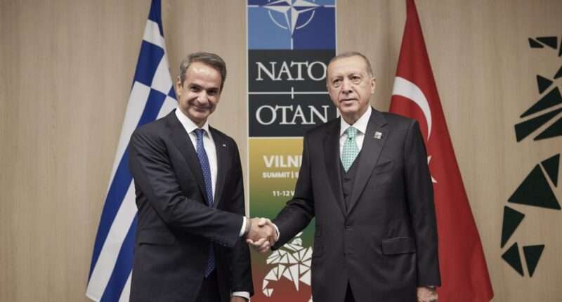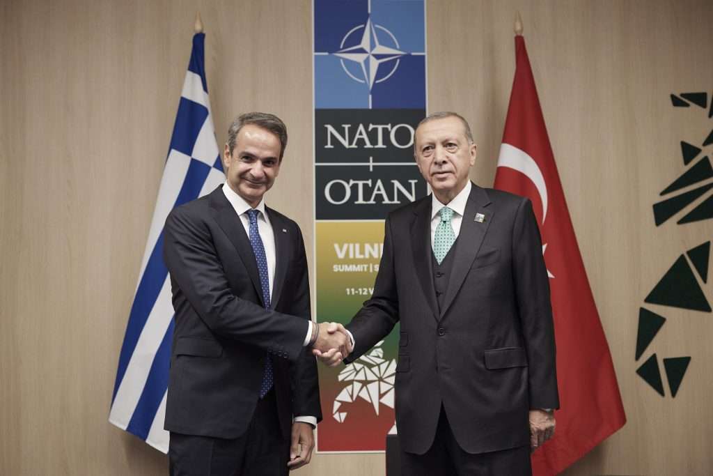 Περίπου μία ώρα διήρκησε η συνάντηση του πρωθυπουργού Κυριάκου Μητσοτάκη με τον Τούρκο πρόεδρο Ρετζέπ Ταγίπ Ερντογάν στο περιθώριο της Συνόδου του ΝΑΤΟ στο Βίλνιους, με ελληνικές κυβερνητικές πηγές να κάνουν λόγο για «ειλικρινή συζήτηση σε θετικό κλίμα». Κατά τις ίδιες πηγές, «οι δύο ηγέτες έθεσαν το πλαίσιο για τη συνέχεια».