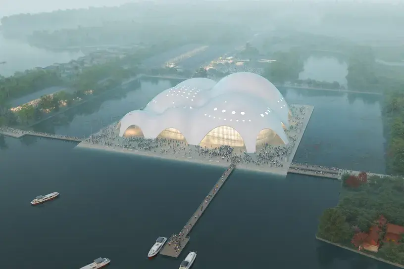 Αυτή η αίσθηση μέτρου και ο σεβασμός για το φυσικό τοπίο κυριαρχούν και στο νέο μεγάλο έργο της διεθνούς αρχιτεκτονικής φίρμας RPBW (Renzo Piano Building Workshop). Πρόκειται για το Westlake Opera House στο Ανόι, ένα ρηξικέλευθο σχέδιο με θόλους εμπνευσμένους από τις καμπύλες του νερού και τα μαργαριτάρια -άλλωστε, όπως εξηγεί το στούντιο, παλαιότερα οι αγρότες συνέλεγαν τα μεγάλα στρείδια γλυκού νερού της Ho Tay, της Δυτικής Λίμνης, για το σπάνιο είδος μαργαριταριού τους με ροζ, πορτοκαλί ή λευκό χρώμα.