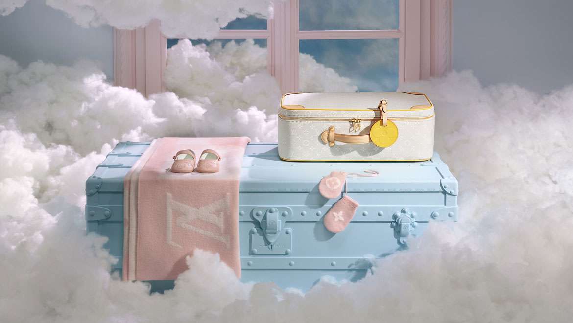 Με την προσθήκη πολυτελών επικαλύψεων, εμβληματικά αντικείμενα σε ασήμι, μικρές ταξιδιωτικές θήκες ακόμα κι ένα αρκουδάκι Louis, ο οίκος οραματίστηκε ένα όμορφο κόσμο όπου κάθε κομμάτι έρχεται να παίξει τον δικό του ρόλο στη ζωή του μωρού.