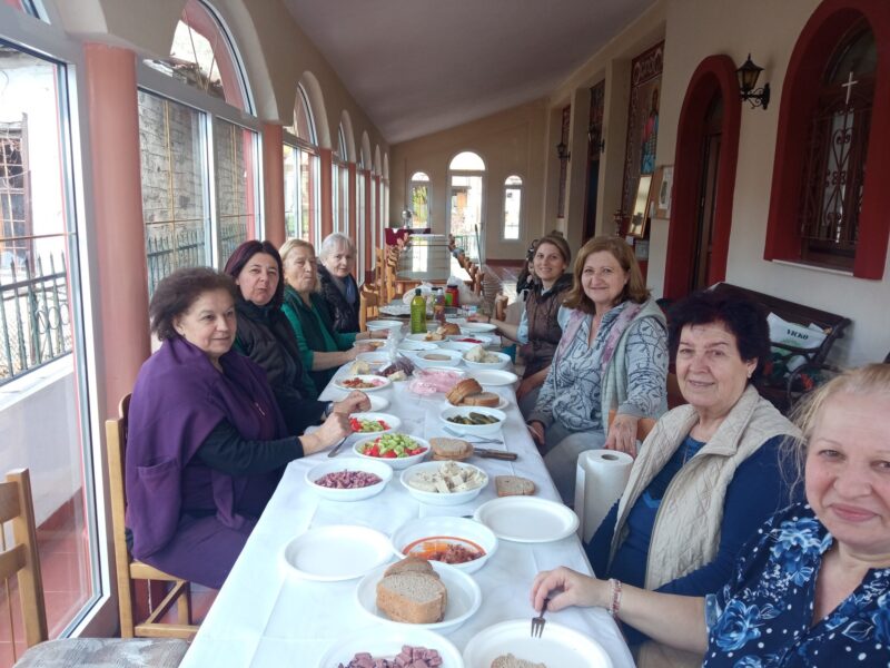 Ήρθαν με γεμάτα χέρια με γλυκές νοστιμιές για τον καφέ και μετά ακολούθησε το καθιερωμένο νηστίσιμο γεύμα της ευγνωμοσύνης προς τις συμμετέχουσες ,που προσφέρει μετά την κούραση της καθαριότητας κάθε χρόνο ο Σύλλογος μας.