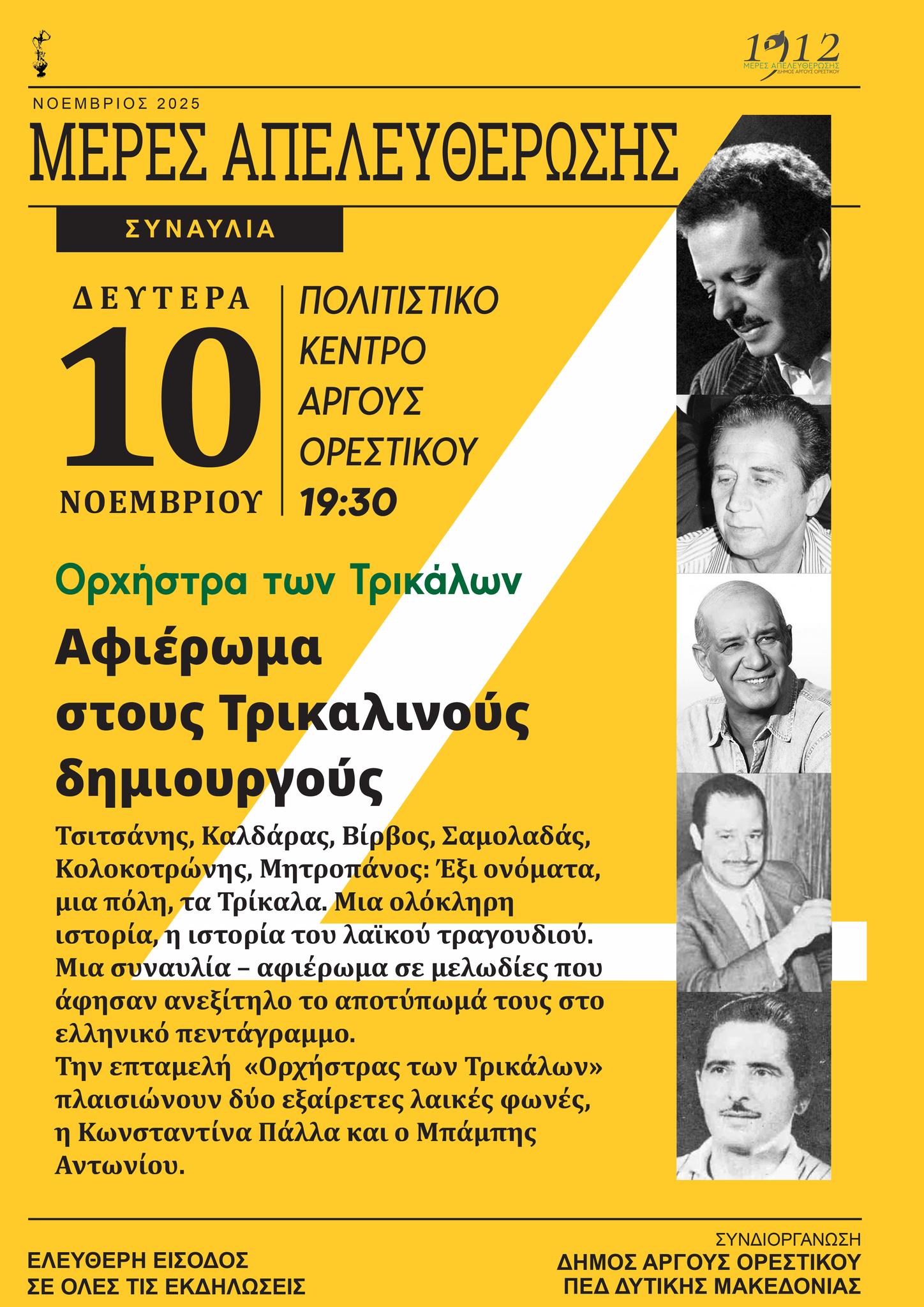 Οι Μέρες Απελευθέρωσης 2025 ξεκινούν τη Δευτέρα 10 Νοεμβρίου με μια μοναδική συναυλία – αφιέρωμα στους Τρικαλινούς δημιουργούς.