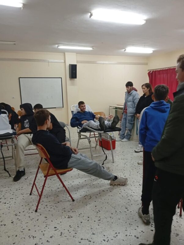 Είναι σημαντική η στιγμή που οι μαθητές του Γυμνασίου, παρακολούθησαν την αιμοδοσία του Διευθυντή του Γυμνασίου.