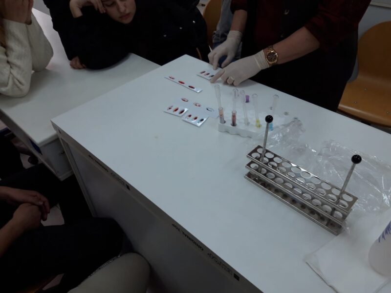 Στο Εργαστήριο Φυσικών Επιστημών του Σχολείου, έγινε αναγνώριση ομάδων αίματος.