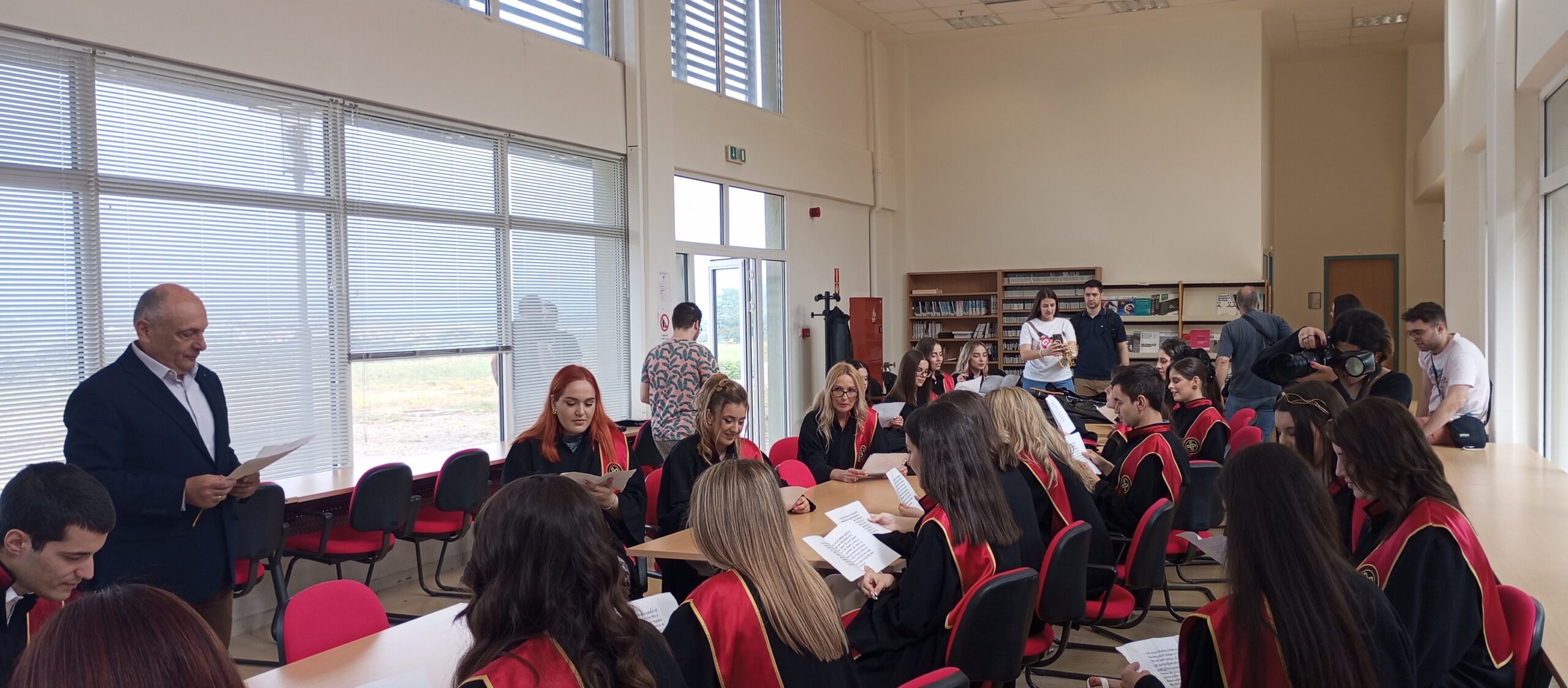 Σήμερα, πραγματοποιήθηκαν δύο ορκωμοσίες του τμήματος Επικοινωνίας και Ψηφιακών Μέσων. Μια των αποφοίτων του παλιού προγράμματος σπουδών και μία του νέου προγράμματος σπουδών . Η προετοιμασία έγινε όπως πάντα στη βιβλιοθήκη του Πανεπιστημίου.