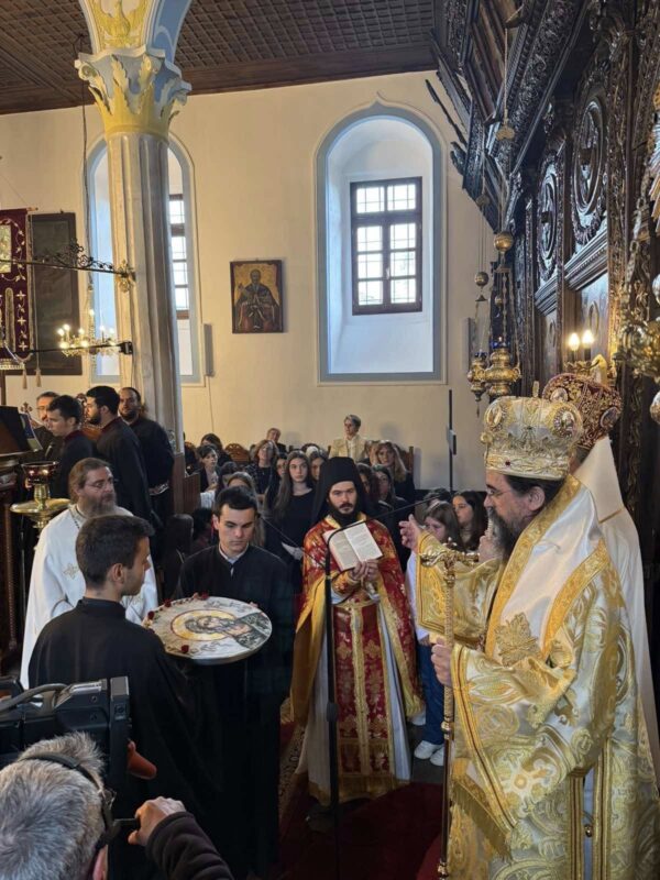 Πρὶν τὴν ἀπόλυση τῆς Θείας Εὐχαριστίας, ὁ οἰκεῖος Ποιμενάρχης κ. Καλλίνικος, ἐξέφρασε τὴ χαρά του γιὰ τὴν ἑορτὴ καὶ τὶς εὐχαριστίες ἰδιαίτερα πρὸς τὸν προεξάρχοντα Μητροπολίτη κ. Εἰρηναῖο γιὰ τὴν ἀποδοχὴ τῆς προσκλήσεως καὶ τὴν καλὴ γειτονία, καθὼς καὶ τὶς δύο χορωδίες τῶν ἱεροψαλτῶν καὶ τὸν τηλεοπτικὸ σταθμὸ 4Ε καὶ πρὸς ὅλους ὅσους κοπίασαν γιὰ τὴν διοργάνωση τῆς πανηγύρεως.