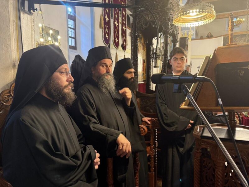 Καὶ τὶς δύο ἡμέρες, τοὺς ὕμνους τῶν Ἱερῶν Ἀκολουθιῶν ἀπέδωσε ἡ συνοδεία τοῦ Γέροντος Δαμασκηνοῦ Νεοσκητιώτου καὶ μέλη τῆς Βυζαντινῆς Χορωδίας «Ἁγιοσοφίτες» ἐκ Πτολεμαΐδος, ἐνῷ οἱ ἱερὲς ἀκολουθίες μεταδόθηκαν ἀπ’ εὐθείας ἀπὸ τὸν Ἐκκλησιαστικὸ Τηλεοπτικὸ Σταθμὸ «4e» καὶ τοὺς Ραδιοφωνικοὺς Σταθμοὺς «Ράδιο Λέχοβο» καὶ «Ἅγιος Γρηγόριος ὁ Θεολόγος» τῆς Ἱερᾶς Μητροπόλεως μας.