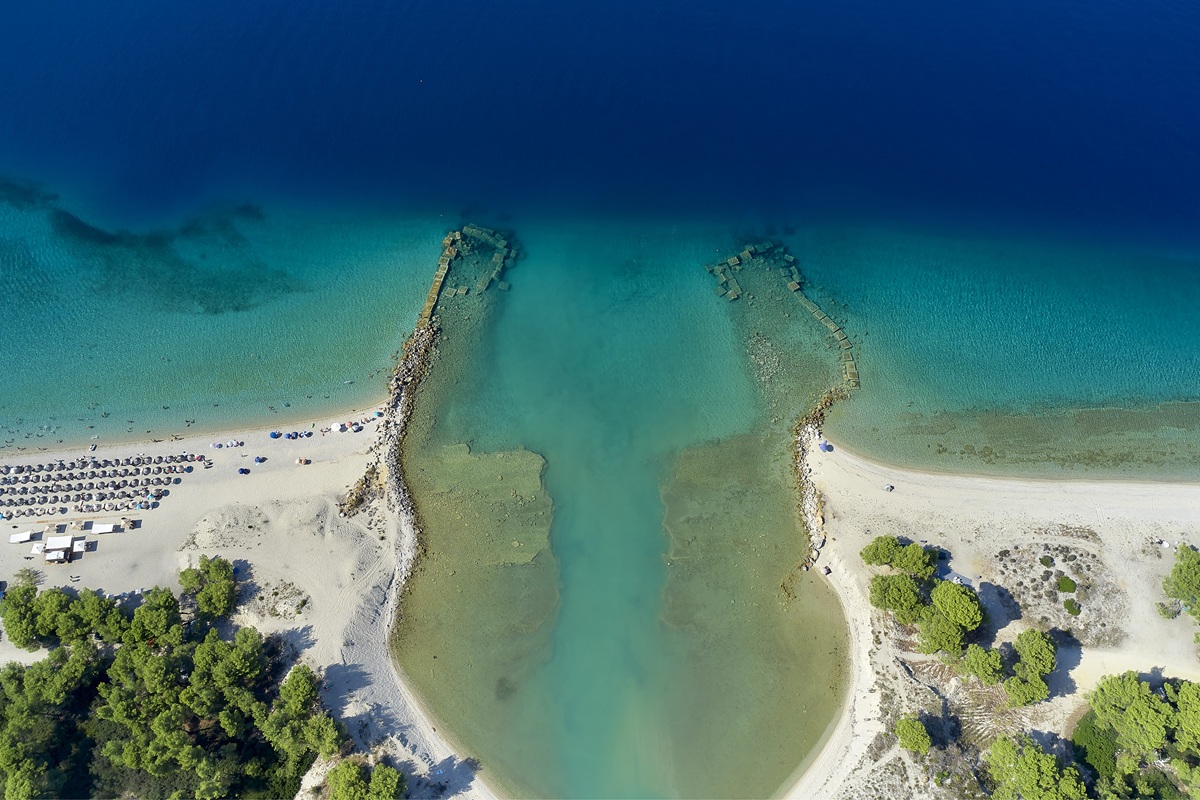 Γνωστή και ως η “Μπλε Λιμνοθάλασσα” της Ελλάδας, είναι ιδανική για οικογένειες χάρη στα ρηχά, ασφαλή νερά της.