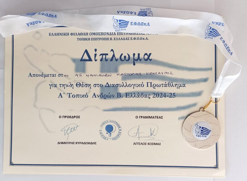 Το Σαββατοκύριακο 29-30/3/2025 πραγματοποιήθηκαν στην Βέροια τα play off του πρωταθλήματος επιτραπέζιας αντισφαίρισης του Α’ Τοπικού Ανδρών Βορείου Ελλάδος όπου συμμετείχαν οι οκτώ καλύτερες ομάδες που είχαν κατακτήσει τις δυο πρώτες θέσεις στους τέσσερις ομίλους στην κανονική διάρκεια του πρωταθλήματος και διεκδικούσαν τα δυο εισιτήρια που οδηγούσαν στην Β’ Εθνική.