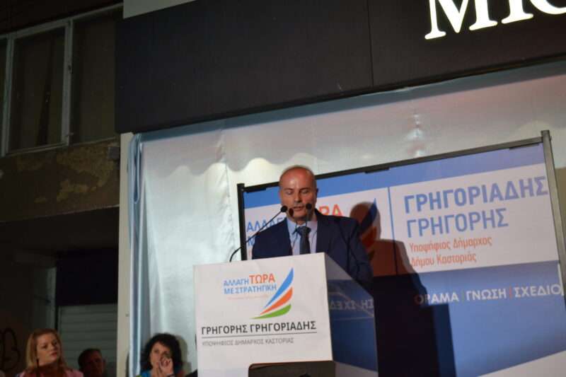 Το αδιαχώρητο επικρατούσε σήμερα το απόγευμα στον πεζόδρομο επί της οδού 11ης Νοεμβρίου, με πλήθος κόσμου να έχει συγκεντρωθεί από νωρίς, για να παρακολουθήσει τα εγκαίνια και τον αγιασμό του εκλογικού κέντρου του υποψήφιου Δημάρχου Καστοριάς και επικεφαλής του συνδυασμού «ΑΛΛΑΓΗ ΤΩΡΑ με ΣΤΡΑΤΗΓΙΚΗ», Γρηγόρη Γρηγοριάδη.