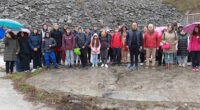 Αδειάζουμε το μίγμα στο βουτυρωμένο ταψί και στρώνουμε ομοιόμορφα την επιφάνεια. Ψήνουμε στον προθερμασμένο φούρνο για 22-24 λεπτά περίπου. Το βγάζουμε και ακουμπάμε το ταψί πάνω σε σχάρα, για να πέσει λίγο η θερμοκρασία του.